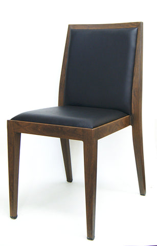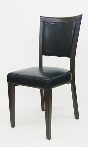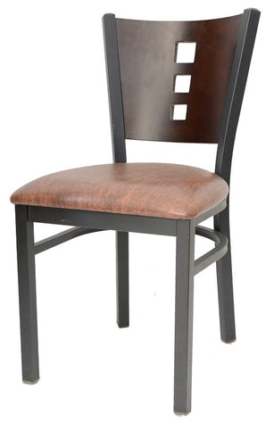 12 SQUARE BACK METAL RESTAURANT CHAIR - MAHOGANY WOOD BACK, BLACK VINYL SEAT