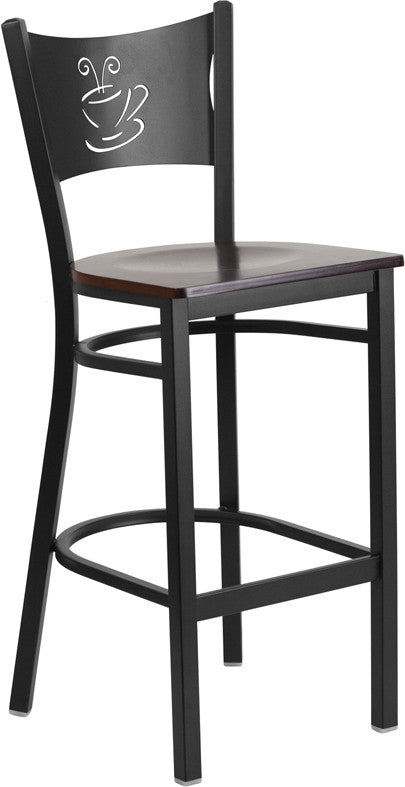 Coffee Back Metal Restaurant Barstool with Mahogany Wood Seat