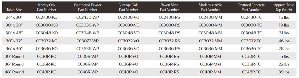 Compcor Weathered Pewter Indoor/Outdoor Table Tops