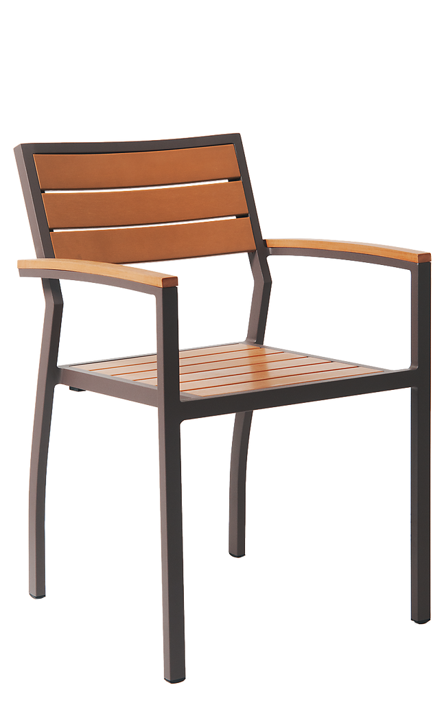 Aluminum Outdoor Armchair Rust Color Finish, Composite Teak Slats #E84
