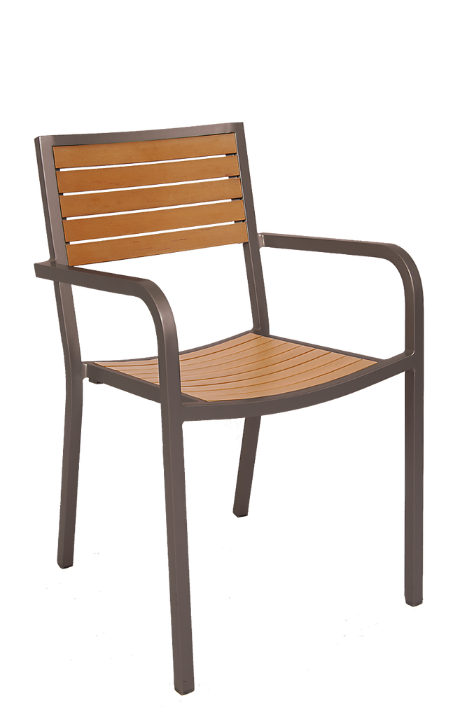 Aluminum Outdoor Armchair Rust Color Finish, Composite Teak Slats #E83