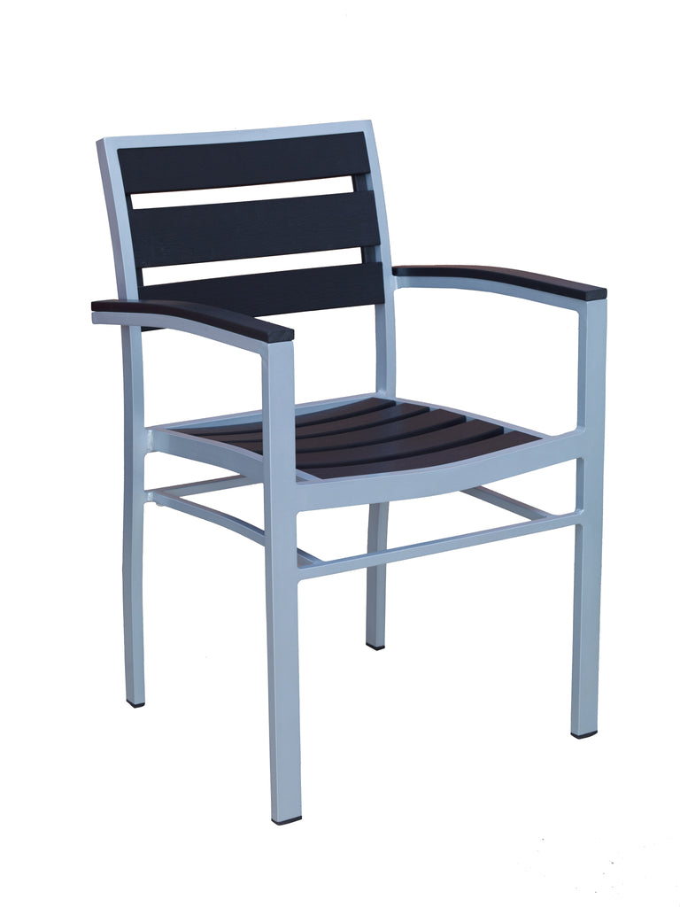 Aluminum Outdoor Armchair with Composite Black Teak Slats E-49 - Restaurant Chairs Direct.COM