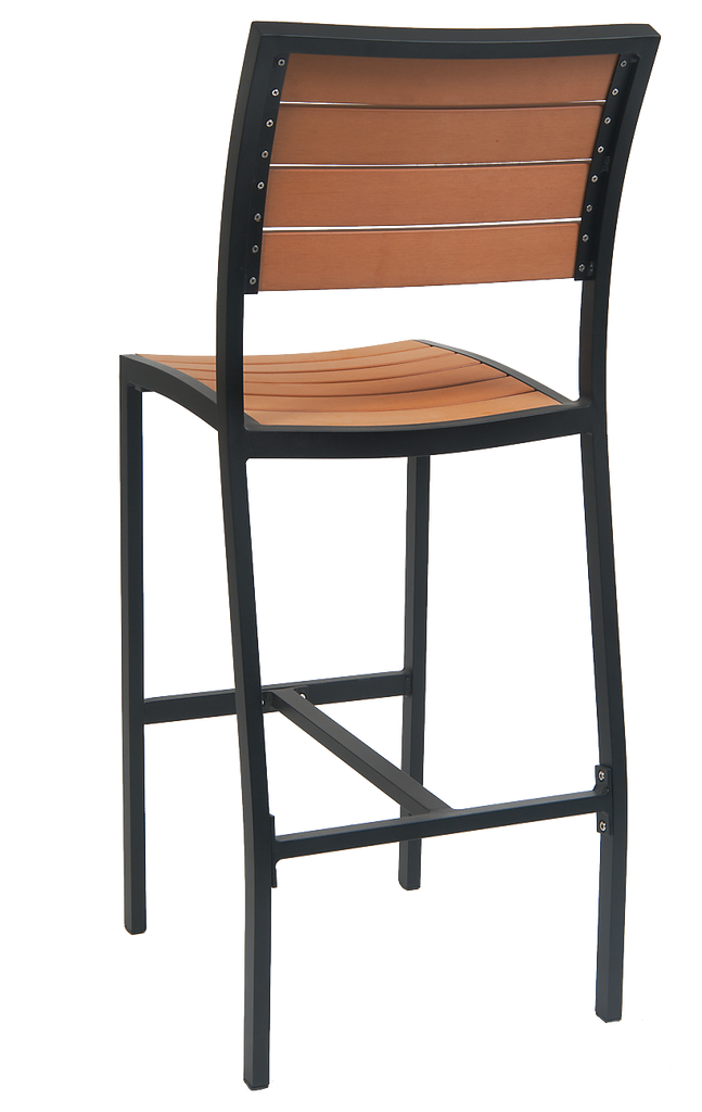 Outdoor/Indoor Aluminum Bar Stool with Synthetic Brown Teak Wood Slats #EV-73B-BS