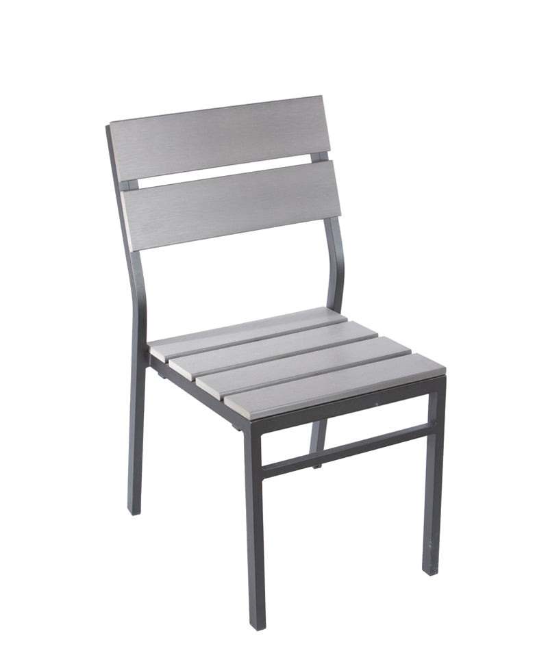 Outdoor Chair, Table & Base, Black Frame, Gray Teak