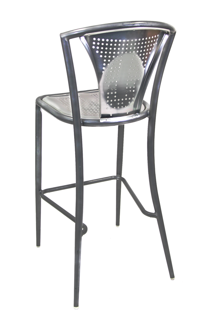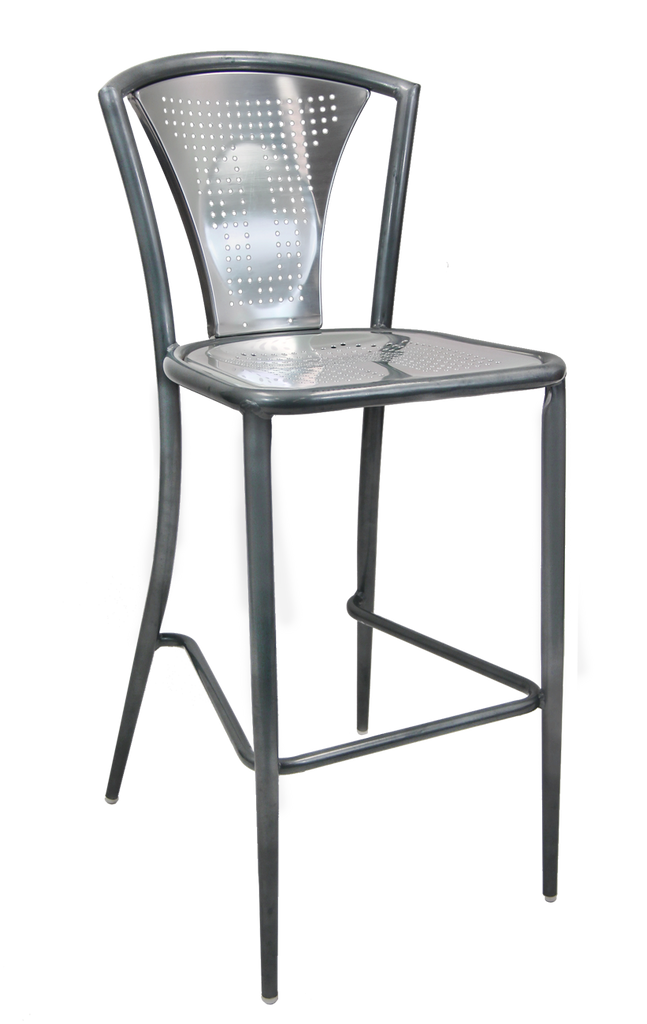 Outdoor/Indoor Aluminum Bar Stool with Synthetic Brown Teak Wood Slats #EV-14-BS
